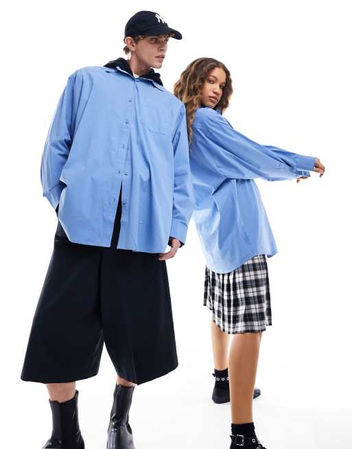 COLLUSION Unisex - Oversized katoenen overhemd in blauw