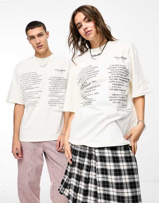COLLUSION Unisex - Oversized T-shirt met tekstprint in ecru