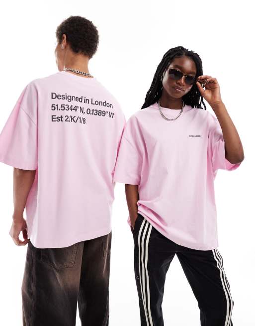 COLLUSION Unisex - Oversized T-shirt van piqué met logoprint op de achterkant in roze