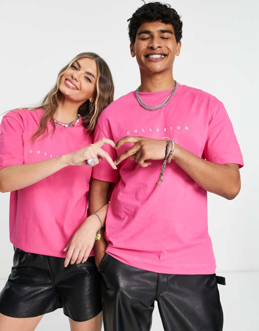 COLLUSION Unisex - T-shirt met logo in felroze
