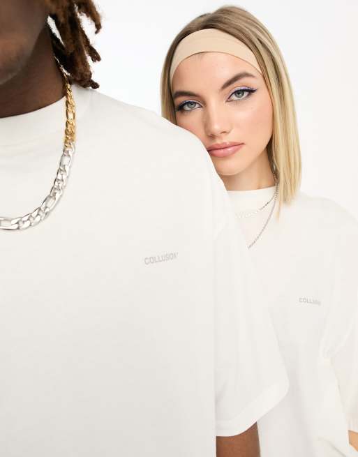 COLLUSION Unisex - T-shirt met logo in gebroken wit