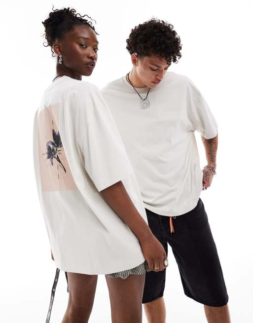COLLUSION Unisex - T-shirt met print op de achterkant in saliegroen met wassing