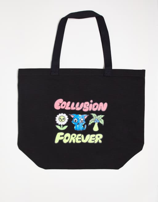 COLLUSION Unisex - Tote met merklogoprint in zwart