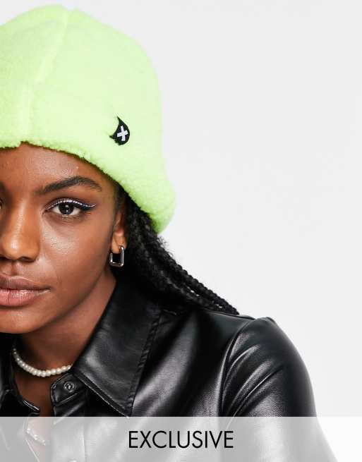 COLLUSION Unisex - Vissersbeanie van borg in neongeel