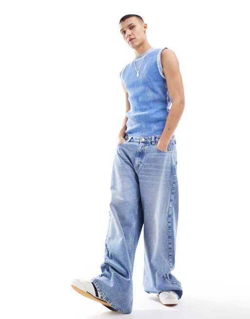 COLLUSION - X002 - Baggy jeans in midwash blauw