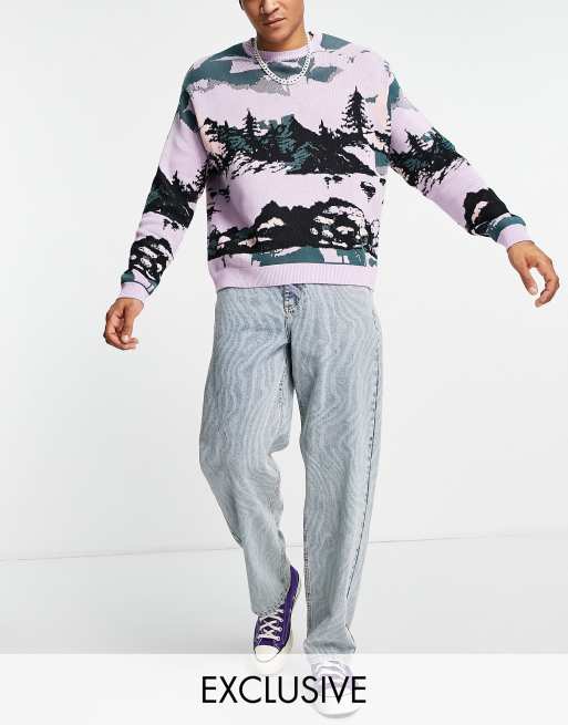 COLLUSION - x014 - Dad jeans van denim met wervelende print
