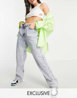 COLLUSION x014 - Jaren 90 stijl ruimvallende dad jeans met platgestikte plooitjes aan de taille in blauw
