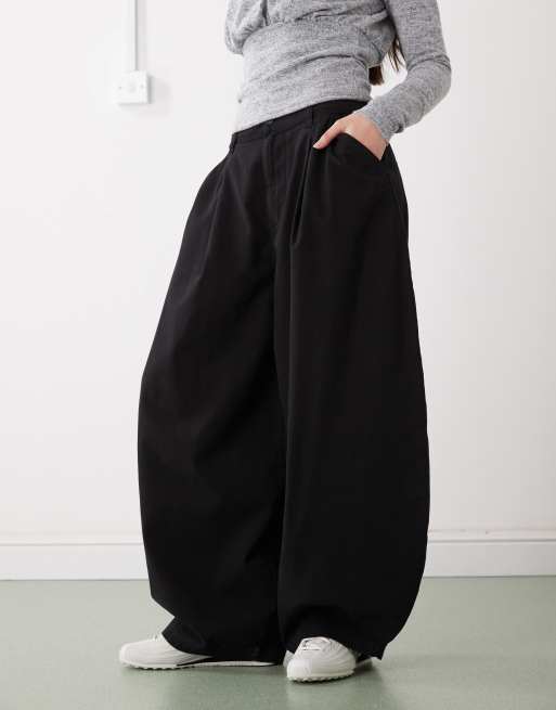 COLLUSION - XL broek met ballonpijpen en plooien in zwart