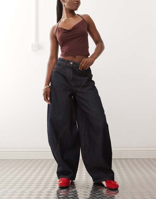 COLLUSION - XL jeans met lage taille en wijde ronde pijpen in spoelwassing