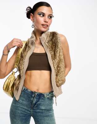 COLLUSION - Y2K gebreide bodywarmer met imitatiebont in beige