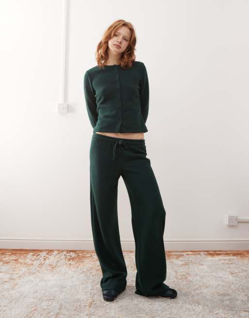 COLLUSION - Zachte broek met wijde pijpen en halfhoge taille in bosgroen, deel van co-ord set