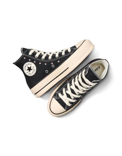 Converse Chuck Taylor - All Star Hi Lift - Met plateauzool en geborduurde sterren in zwart/Lotus roze/wit