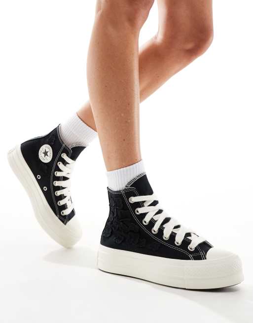 Converse - Lift Hi - Sneakers met organza bloemen en dikke veters in zwart