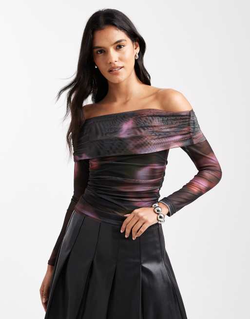 Cotton On - Ashley - Top van mesh met blote schouders in donkerbruin