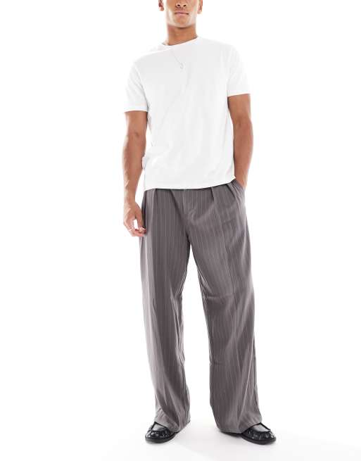 Cotton On - Baggy geplooide broek in antracietgrijs met krijtstreep
