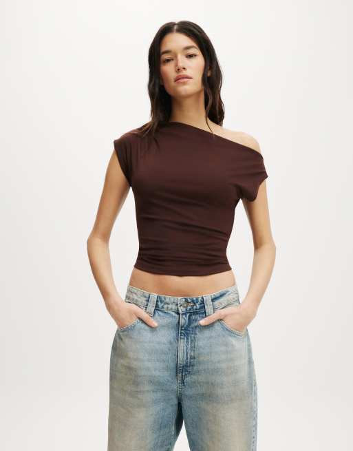 Cotton On - Georgie - T-shirt met korte mouwen en blote schouder in bordeauxrood