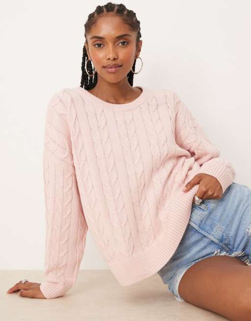 Cotton On - Sweater met ronde hals van katoen in zachtroze