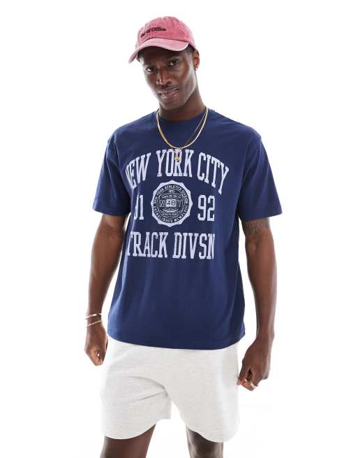 Cotton On - Losvallend universiteits-T-shirt met grafische NY track-print in indigo