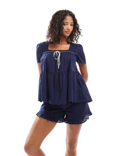 Cotton On - Pyjamaset met korte mouwen in marineblauw