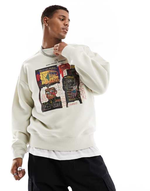 Cotton On - Ruimvallend sweatshirt met Basquiat-kunstprint in ecru