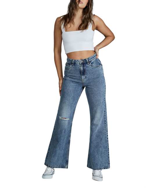 Cotton On - Ruimvallende flared jeans in middenblauw