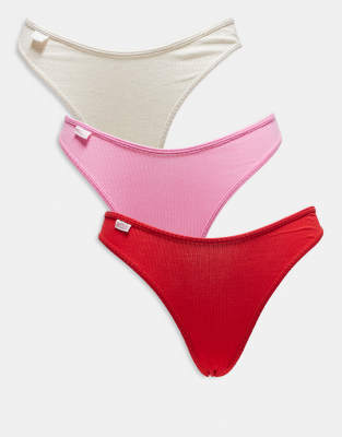 Cotton On - Set van 3 geribbelde katoenen onderbroeken in rood, roze en bruin