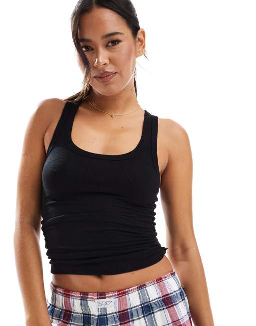 Cotton On - Sleep Recovery - Geribbelde pyjamatop met racerhals in zwart