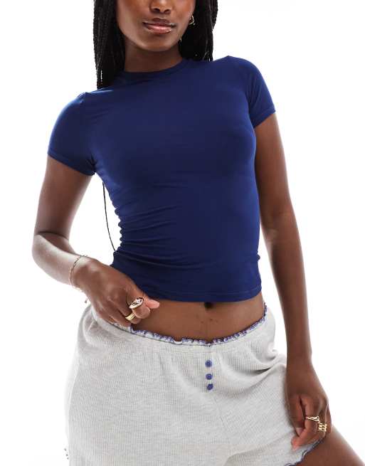 Cotton On - Zachte aansluitende pyjama loungetop in marineblauw