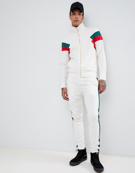Criminal Damage - Trainingspak in wit met rode zijstreep