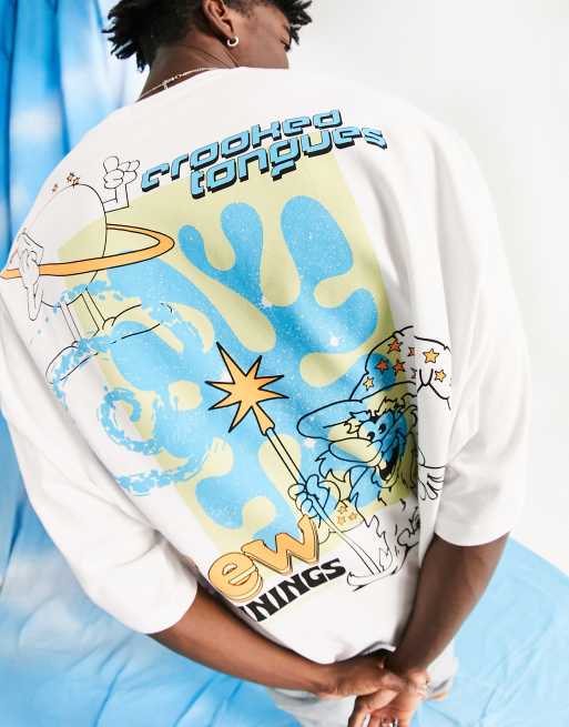 Crooked Tongues - Oversized T-shirt met grafische tovenaarprint in wit