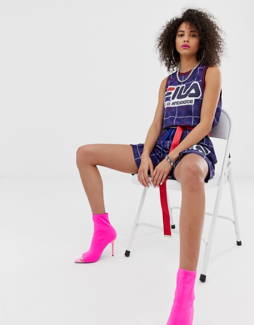 D-Antidote x Fila - - Geruit hemd en short met logo, combi-set