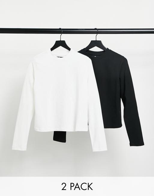 Daisy Street Plus - Set van 2 met crop T-shirts met lange mouwen in zwart en wit