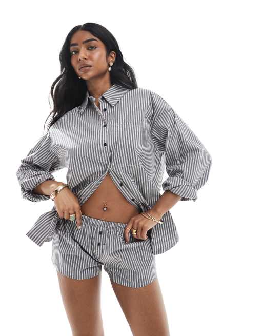 Daisy Street - Broek in boxerstijl met elastische taille in zwart-witte streep, deel van co-ord set