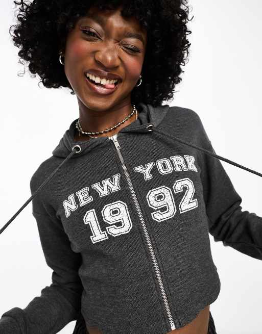 Daisy Street - Cropped hoodie met rits aan de voorkant en 1992-print