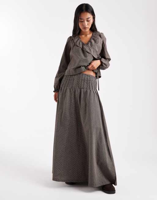 Daisy Street - Geruite maxi-jurk met verlaagde taille en geplooide naden in bruin, deel van co-ord set