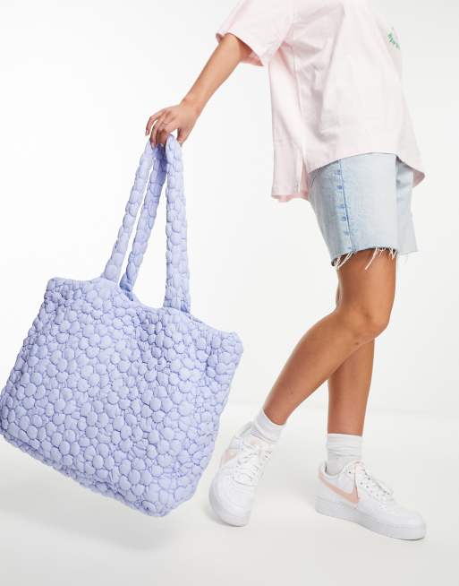 Daisy Street - Gewatteerde tote met gebloemde stiksels in blauw