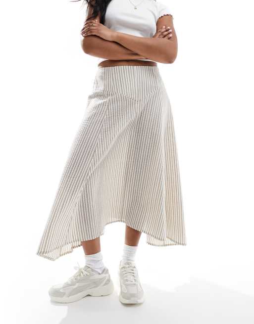 Daisy Street - Midi-rok met lage taille, zakdoekzoom en bruine strepen