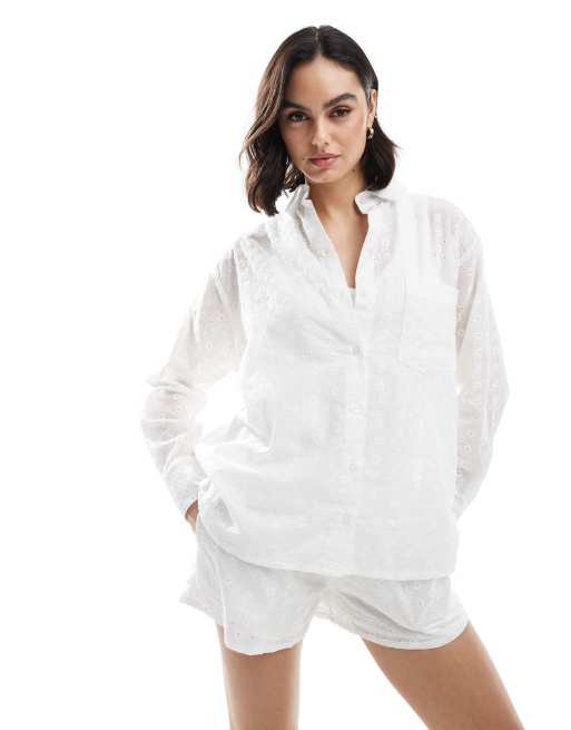 Daisy Street - Oversized broderie overhemd in wit, deel van co-ord set