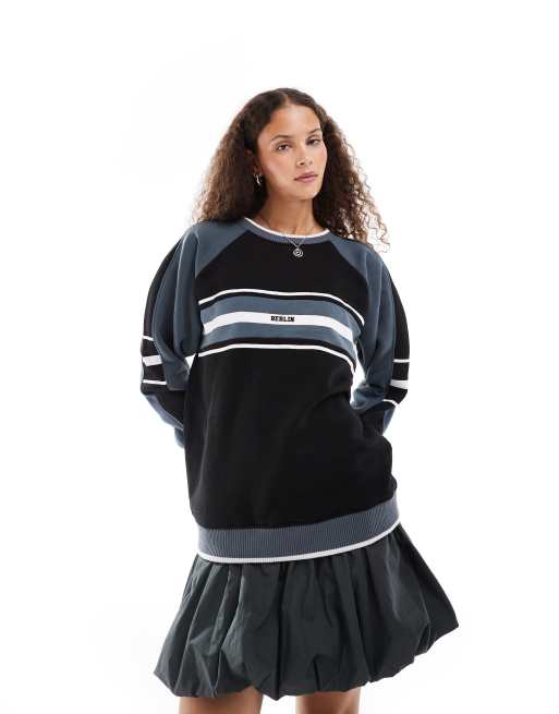 Daisy Street - Retro baggy sweatshirt in zwart en grijs