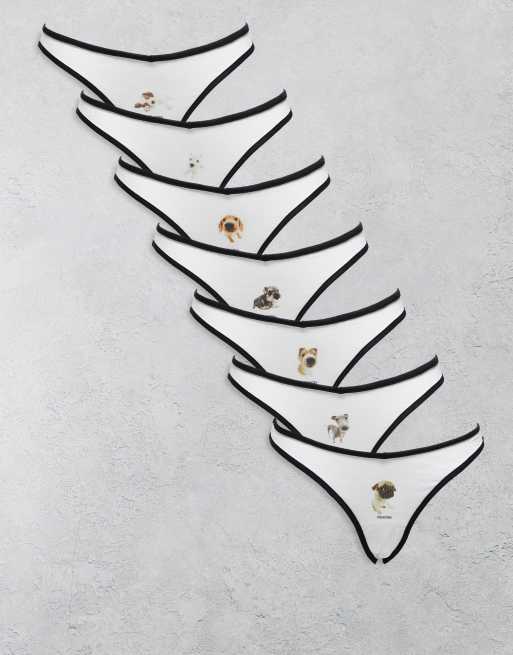 Daisy Street - Set van 7 onderbroeken met honden- en dagen-van-de-week-print in wit