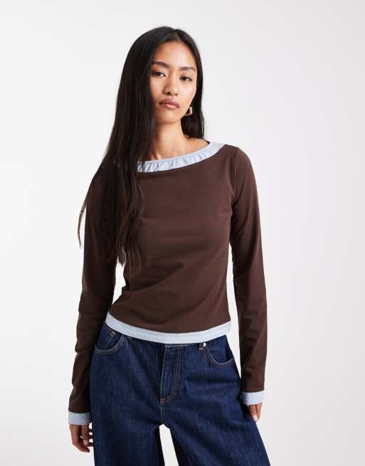 Daisy Street - Top met dubbele laag in bruin en blauw