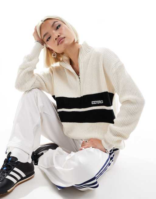 Daisy Street - Trui zonder sluiting met korte rits en Oxford-borduursel in beige