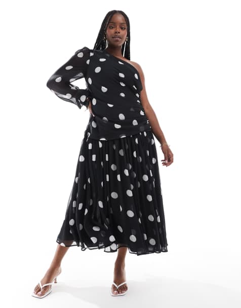 Laad vorigeMeer informatie over hoe deze producten worden gesorteerdASOS DESIGN Curve - Midi overhemdjurk met korsetzoom, reverskraag en gevlekte print in zwart-wit