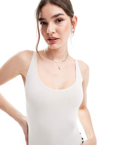 ASOS DESIGN - Top van gladde polyamide met vierkante hals en gestrikte achterkant in zwart