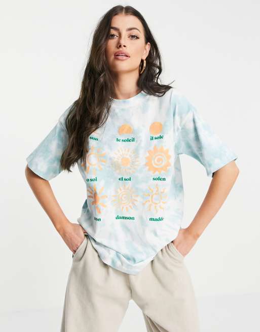 Damson Madder - Oversized T-shirt van katoen in tie-dye met zonneprint
