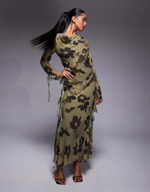 Daska - Maxi jurk van chiffon met ruches in abstracte print