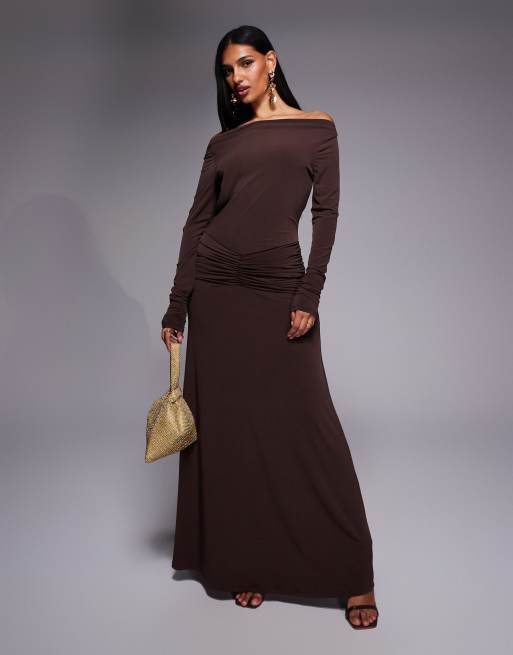 Daska - Maxi jurk van jersey met strik op de rug in chocoladebruin