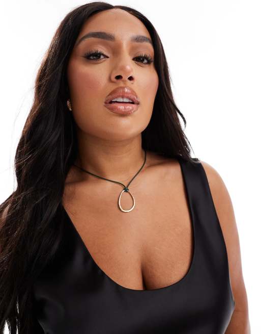 DesignB London Curve - Chokerketting van koord met rond hangertje in goud