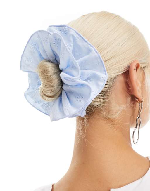 DesignB London - Haarscrunchie van broderie in vaalblauw