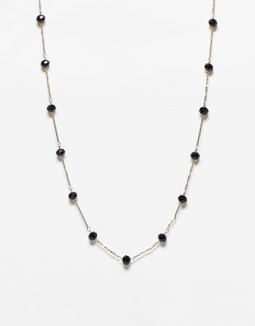 DesignB London - Ketting met bolletjes van zwarte siersteentjes in goudkleur